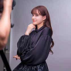 胸元のレースとウエストのベルトが印象的な黒のドレスで登場したMIIHIの撮影は、終始RIKUに見守られながら進行。待機中にRIKUと目が合うと、手を振り合う姿も。メンバーの着ている黒い衣装に対し「初めてで、最初は少し違和感がありましたが、みんな黒も似合ってました!」と太鼓判を押した。RIKU、リクエストに照れ笑い