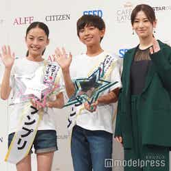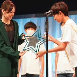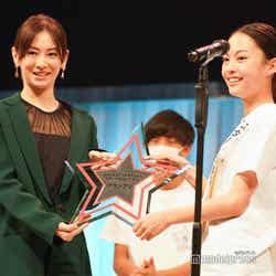 今回グランプリに輝いたのは、竹野世梛さん(たけのせな/13歳/中学1年生/大阪府出身)と山木雪羽那さん(やまきゆうな/12歳/中学1年生/大阪府出身)。約2年ぶりとなる同オーディションでは、グランプリ受賞者にいきなり映画デビューが出来る出演権や、賞金総額100万円の特典などが与えられる。1万5918名の中からグランプリに輝いた竹野さんと山木さん。名前を呼ばれてから緊張の面持ちでステージ中央に進み出た竹野さんは、「緊張していて言葉が出ないのですが、すごく嬉しいです」と喜びを語った。そんな竹野さんの表情が大スクリーンにアップで映し出されると、会場からは「かわいい」のため息が漏れた。