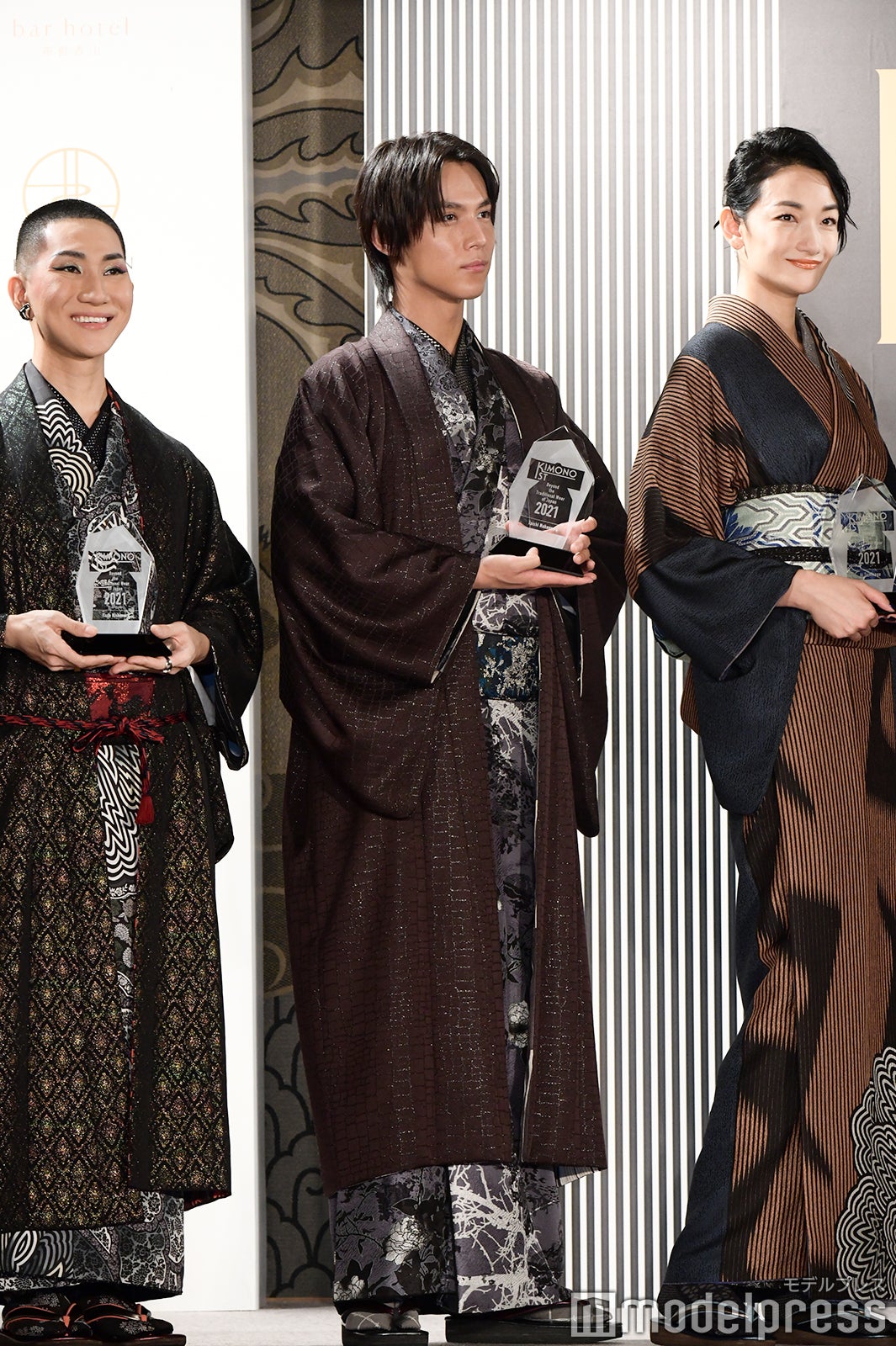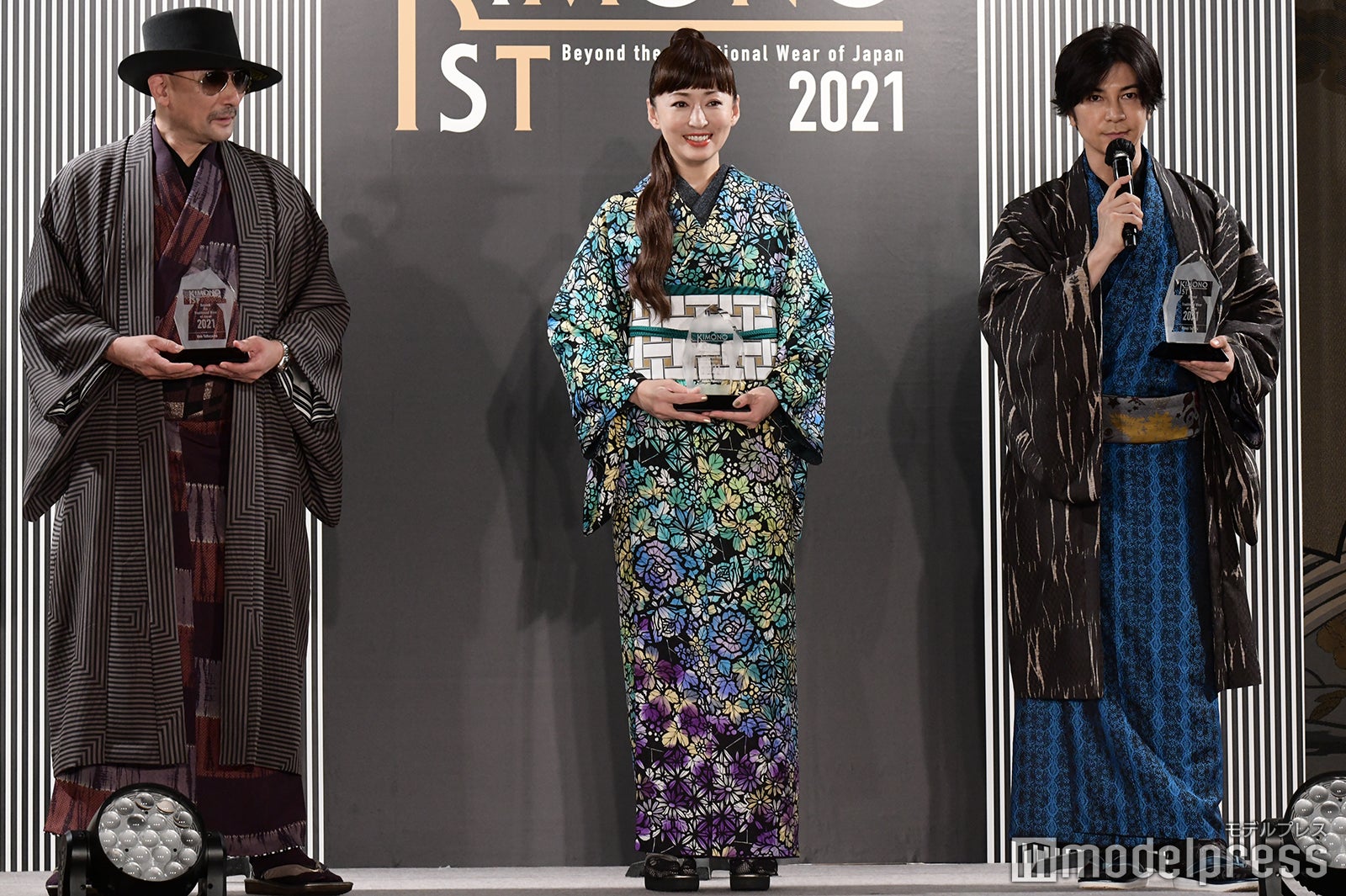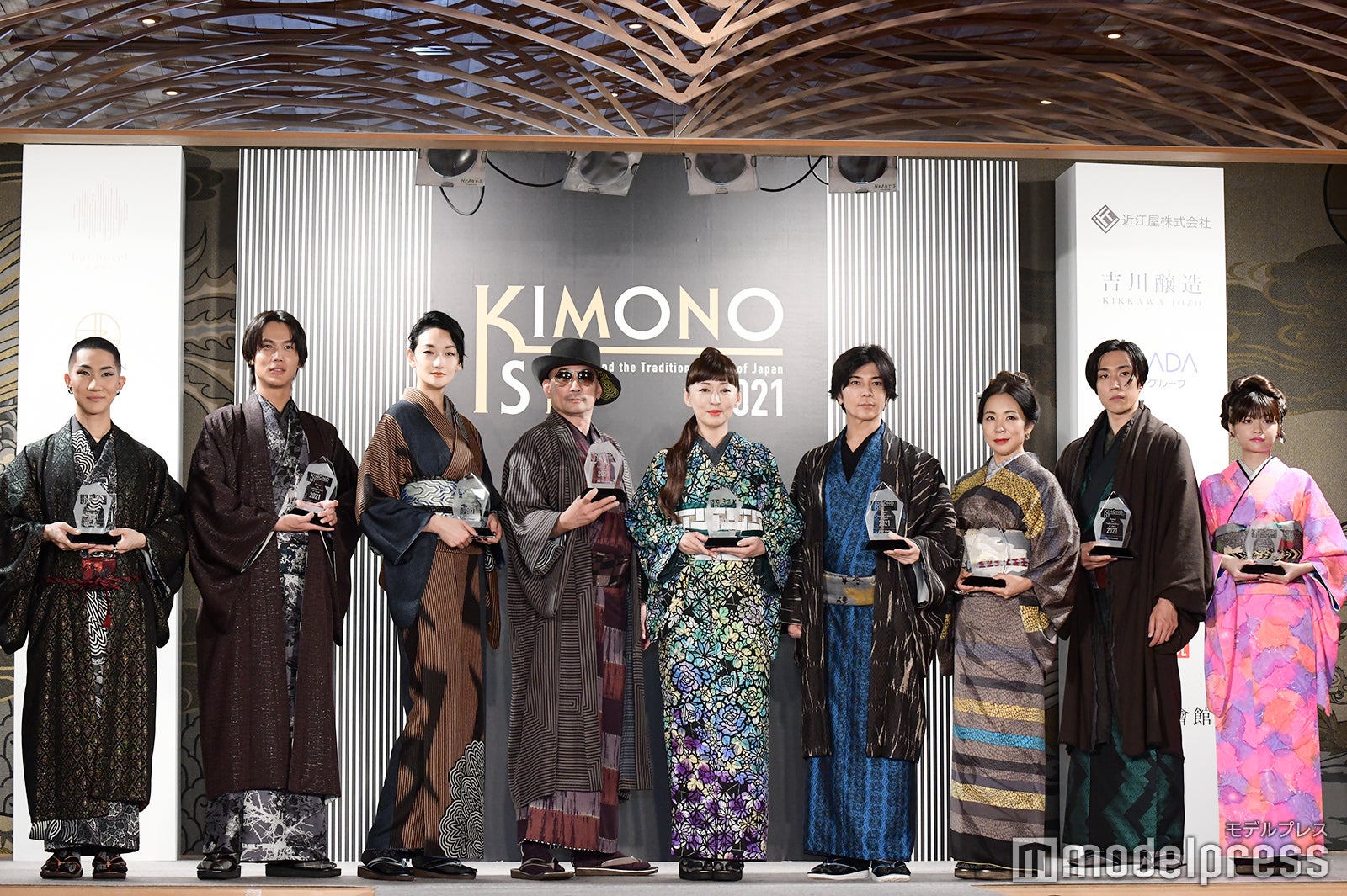 本アワードは、未来のキモノの発信者、新しく進化するこれからの“キモノ”を着てほしい人に贈られるもの。この日は、クリエイターでタレントの景井ひな、俳優の早乙女太一、武田真治、モデルの冨永愛、建築家の永山祐子、メイクアップアーティスト・僧侶の西村宏堂、女優の松雪泰子、音楽家の横山剣も出席していた。