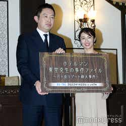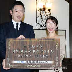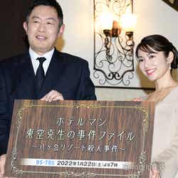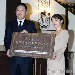 本作は、石ノ森章太郎原作の名作コミック「HOTEL」のスピンオフドラマ。主人公の東堂克生ゼネラルマネージャー(内藤剛志)が総支配人を務める八ヶ岳のリゾートホテルで発生した殺人事件を描く。内山は藤堂と別れた妻の間に生まれた娘で事件捜査のためにやってきた刑事・高梨薫を演じる。内藤から結婚を祝福する花束を受け取ると「ありがとうございます」と笑顔。劇中と同じように、もし内藤と親子関係だったとしたら、どんな親子関係になるかと聞かれた内山は「バーのシーンがあるんですけれども、私はそのシーンがすごく好きで。そこの距離感の中で、刑事とホテルマンとしてじゃない、唯一親子になれるシーンがあるんです」と見どころを紹介。