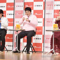 この日、前田は大好きな「お酢」を販売する会社のアンバサダーに就任した。宣伝部長として、人生初の名刺も作成され、さっそくマヂカルラブリーの2人に名刺を手渡した。「人生初めての名刺です。2人にもらっていただいて嬉しい」と満面の笑み。前田と初対面となった村上は「キンタロー。と会ったことはあるんですけど、本物は初めて(笑)」といい、野田は「名刺に前田さんの電話番号が書いてないじゃないですか。どうやって電話すればいいんですか!」とボケて笑わせた。