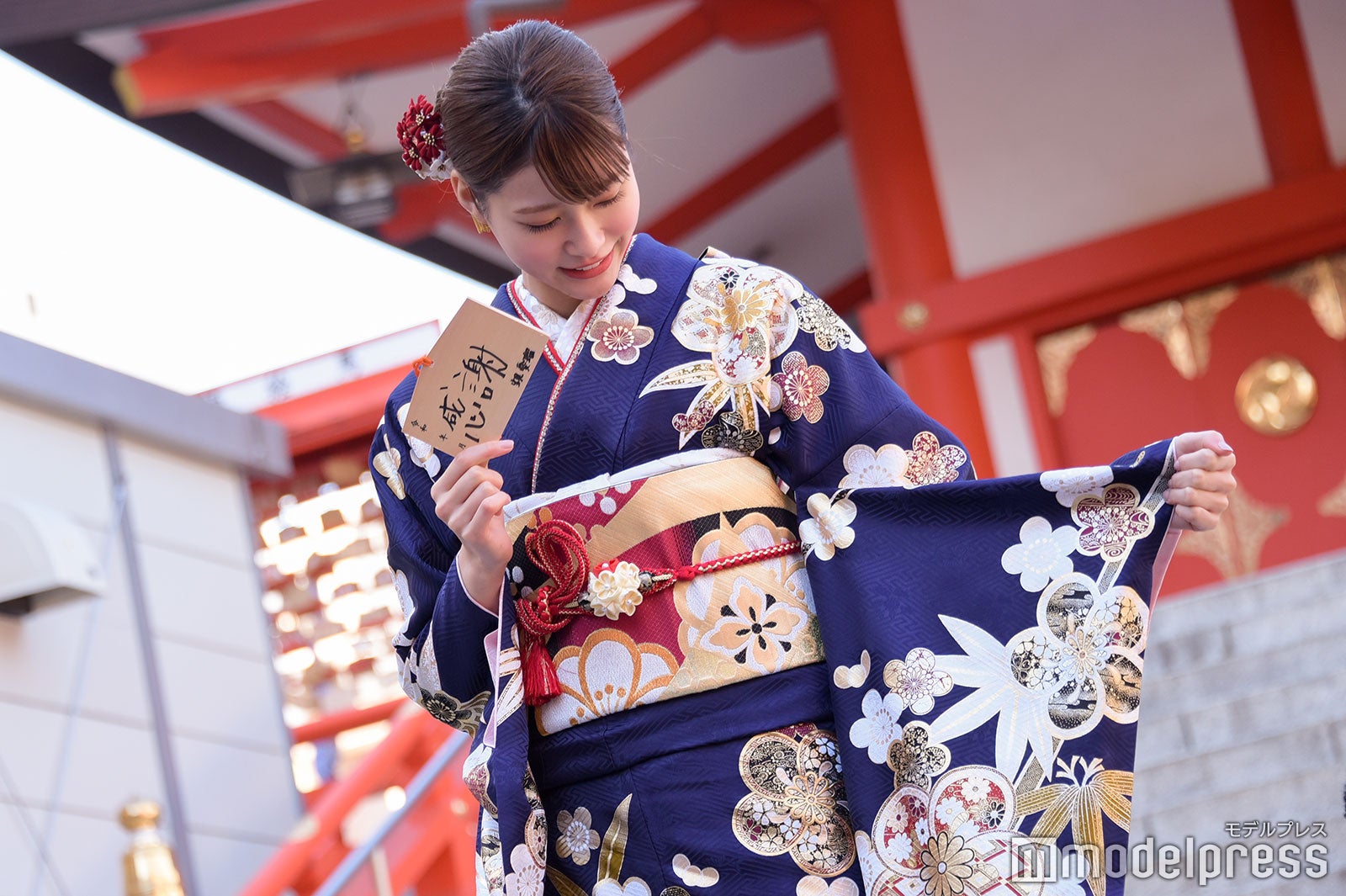 モデルでタレントの生見愛瑠が新成人を迎え、東京・花園神社にて晴れ着姿を披露。報道陣の取材に応じ、新成人の抱負を明かした。
