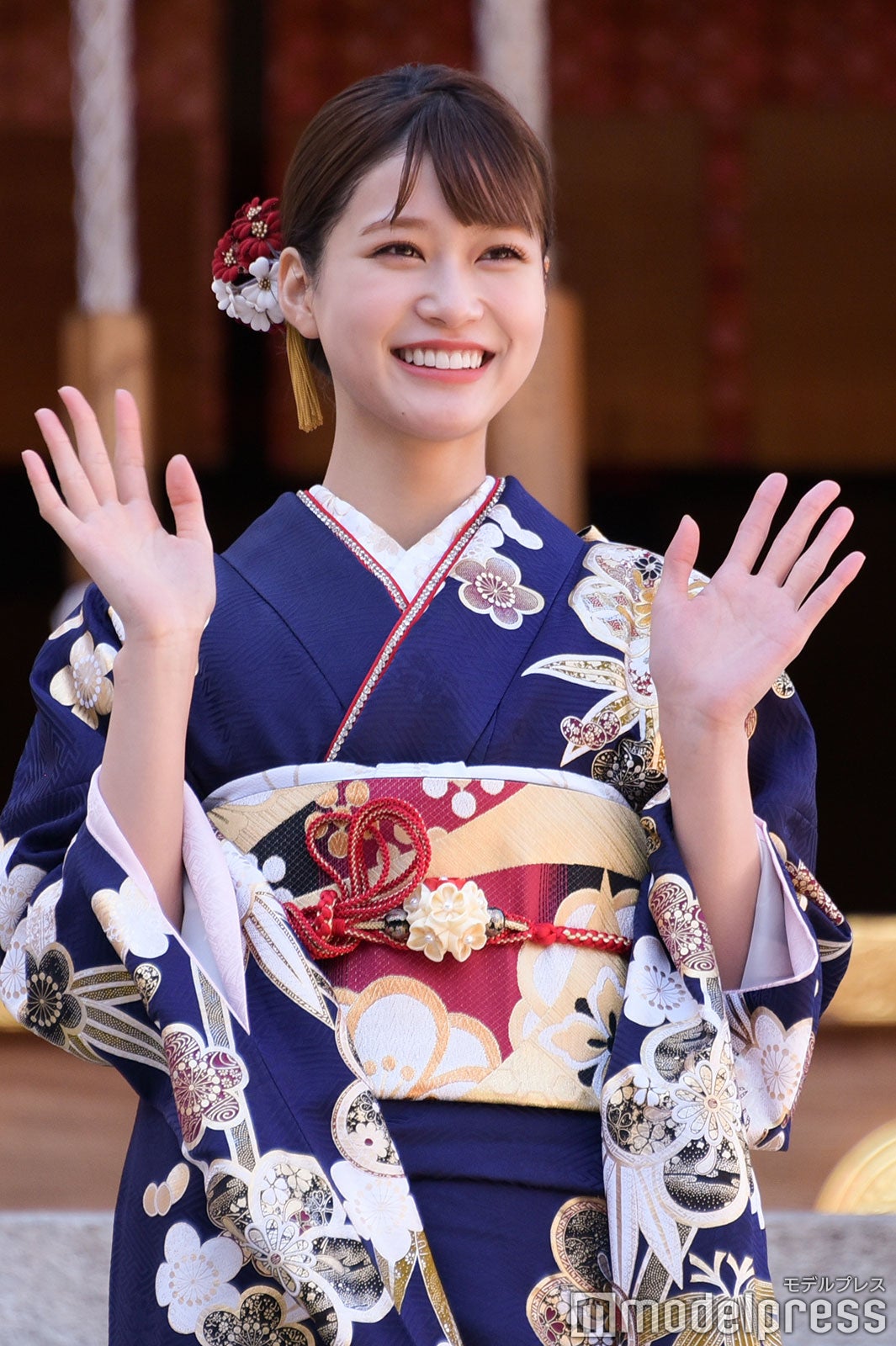 生見は、自身がイメージキャラクターを務めている呉服専門店の晴れ着姿で登場。着用する着物は自身で選んだと言い「色で迷いました。王道の赤か、大人っぽいネイビーか…。大人っぽくなりたいのでネイビーの可愛い梅柄にしました。いっぱい花があって自分でも見きれないくらい」と満足げだった。誕生日が3月6日と早生まれの生見。1月10日の成人の日は19歳で迎えた。未成年のままとあって「新成人の実感はあまりない」と言うが「新成人になっても元気にハッピーに過ごせたら。お仕事大好きなので全力で頑張りたいです。少しずつファッションも大人になれたらなと思います」とにっこり。また「大人の階段を上るので地元の友達と食事会をして初めてお酒を飲むのが楽しみ。お友達のお家でゆっくり楽しみたいです」と語った。