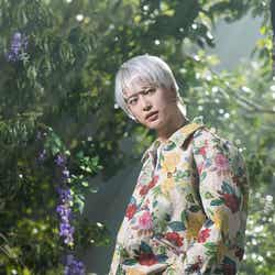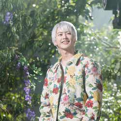 木々や花に包まれた幻想的なボタニカルシーンに起用されたのは、自身も花柄や花のステッチが施されたカラフルな衣装を身にまとったRYOKI。POPな衣装も、クールな雰囲気を崩さず着こなし。スタイリングオイルでセットされたシルバーカラーの髪色が光り、艶めく自然を表現したセットとマッチしていた。掛け声のもと、音楽がかかったと同時にダンスとさわやかな笑顔でパフォーマンスを披露する姿に、一発目から「いい表情をしている」との監督の声に、嬉しそうにはにかむRYOKI。「今のカットすごい良かった!」と褒められ、個人撮影は、わずか3テイクで終えた。