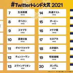 「#Twitterトレンド大賞」では、データ・ドリブンで集計された「2021年に最も話題となった上位20個」のトレンドワードを「#Twitterトレンド大賞」として発表。 今年日本のTwitter内でトレンドインした全てのワードを集計し、通年でのツイート量などを総合的に組み合わせた独自のアルゴリズムでランキング化した。また「#Twitterトレンド大賞 部門賞」では、今年Twitter上で活発に議論されたゲーム、スポーツ、アニメ、ニュースの4つのジャンルに属する話題をピックアップし、各ジャンルで最も盛り上がったハッシュタグを関連するゲストを招き表彰。
