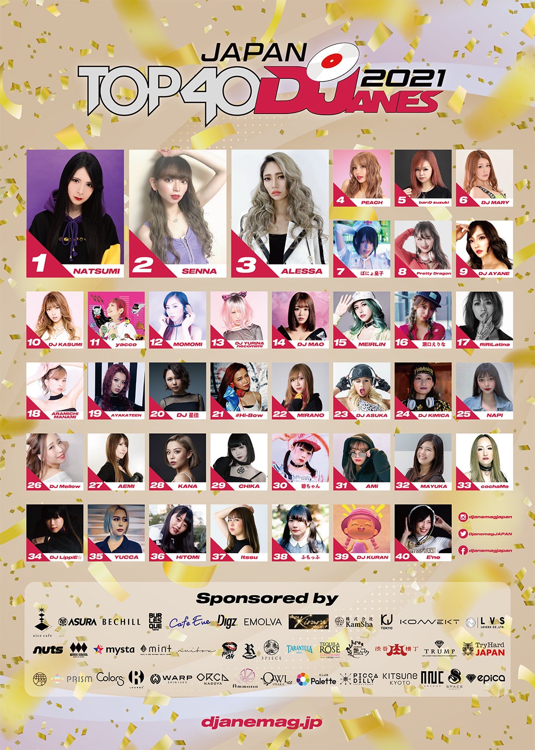 日本の女性DJ TOP40を発表するイベント「DJane Mag JAPAN TOP40DJanes 2021」が行われ、2021年度DJクイーンにNATSUMIが輝いた。