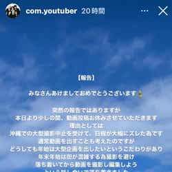 コムドットはこの日、ストーリーズにて「突然の報告ではありますが 本日より少しの間、動画投稿お休みさせていただきます」と発表。理由としては「沖縄での大型撮影中止を受けて、日程が大幅にズレた為」とし、年始には大型企画を出したいというこだわりがあるため、この決断にいたったと説明した。
