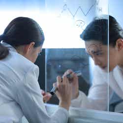 2人の白衣を身にまとった姿も見どころの一つ。DIORの研究員として、研究に熱中する横顔も惚れ惚れするほど美しさが際立っている。