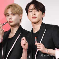 「魅」と書いた白岩は「人の心を惹きつけるとか魅了していきたいなっていう気持ちと、男性初めてのアンバサダーっていうことで、これからは男性でもメイクしたりとかして人を魅了する時代が来るぞっていうことを、僕たちが代表させていただいているのが僕はすごく嬉しくて。本当にそれを表した字だなと直感で思ったので、こうなれるように頑張っていきたいと思います」と個人として、そしてアンバサダーとしての抱負を兼ねた1文字をチョイスしたようだ。川尻は2色を使って「ハイブリッド」と書き初め。「イヴ・サンローランの魅力とJO1の魅力をしっかりと発信できるハイブリッドな人間になりたいなということでハイブリッドにさせていただきました」と明かしていた。