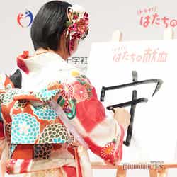 昨年10月に二十歳の誕生日を迎え、今年、成人式の山之内は、華やかな振り袖姿で登場し、会場を彩った。イベントでは、2022年の抱負を書初めで披露する企画が行われた。「守」の字を記した山之内は、「私の今年の抱負は“守る”です。二十歳にもなりましたし、これから、自分のことはちゃんと自分で守れるように強くなりたいな」といい、「周りの人たち、大事な人たちを守れる強さを持ちたい」と続けた。