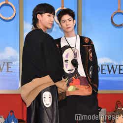 この日はryuchellのほか、OWNCEAN、桜田通、Taiki&Noah、谷晃生、夏木マリ、眞栄田郷敦、マギー、松田ゆう姫、モトーラ世理奈が来場。フォトコール後、夏木とともに囲み取材に応じたryuchellは、「千と千尋の神隠し」の世界にリメイクされた同ポップアップストアを内覧した感想を聞かれると「よく原宿には来てショッピングをしたりするんですけど、ちょっと入ったところにこんな空間があって、広い空間ではないんだけど、壁一面が空だったり、天井も高いですし、『千と千尋の神隠し』の世界に迷い込んだような素敵な空間が作られていて。さっき僕のInstagramにあげる用にいっぱいお写真を撮らせてもらったんですけど、映える写真ばかり撮れてどれをあげようか迷うくらい素敵な空間で感動しました」と目を輝かせた。