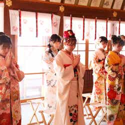 桜田は「お世話になった人たちに恩返しできるようになりたいです。まだ研究生なので、昇格できるように毎日レッスンを頑張っていき、自立した女性になりたいです」。折坂は「かわいい振袖が着られてとってもうれしいです。目標は、いろんな人に優しさを与えられる人になりたいです」と述べた。