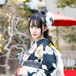 そして、新成人を迎えた感想や今年の目標について、まずは黒い振袖が個性的な山本から「自立したカッコいい大人になり、親孝行もしたいです。モデルのお仕事ももっとできたらと思っています」。上西は「アニメがすごく好きなので、声優さんなどアニメに関われる仕事を経験したいです」と目標を語った。