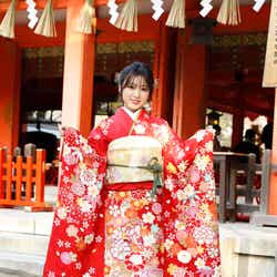 例年、国内AKB48グループの新成人メンバーは東京の神田明神に集まり、合同での成人式を行っていたが、今年も新型コロナウイルス感染症の影響により、各地方からの移動は自粛し、昨年に引き続き、HKT48の地元・福岡での開催となった。それぞれが選んだ艶やかな振袖に身を包んだ二人は、フェイスシールドを着用し、神殿入り。新成人として健やかに過ごせるようご祈祷を受けた。