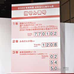1等商品の1つに『電子マネー31万円分』があることにちなみ、普段、電子マネーを使うことはあるか尋ねられた長濱は「毎日使っていますね。普通のお買い物だったり、移動手段だったり、手軽に電子マネーを利用しています」と明かし、31万円分の電子マネーが当たったらどう使いたいか追求されると「年末に大掃除をして、掃除機を買い替えたいなと思ったので、家電に使いたいと思います」とにっこり。残ったお金については「両親にゆっくりした旅行をプレゼントできたらなと思います」と語った。また、抽選会で1の位を担当した長濱は、最初の数字の抽選を終えると「やはりドキドキして、こんなに責任重大なんだと緊張しました」と吐露し、「早く家に帰って(年賀状を)見たいなって思いました」とコメント。