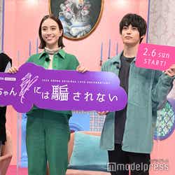 女優の飯豊まりえとモデルの滝沢カレンが、都内で開催されたABEMAオリジナル恋愛番組『彼とオオカミちゃんには騙されない』(初回放送2022年2月20日22時/ABEMA SPECIALチャンネル)スタジオメンバー合同取材に出席。飯豊と滝沢が“キュン”とする男性像を明かした。