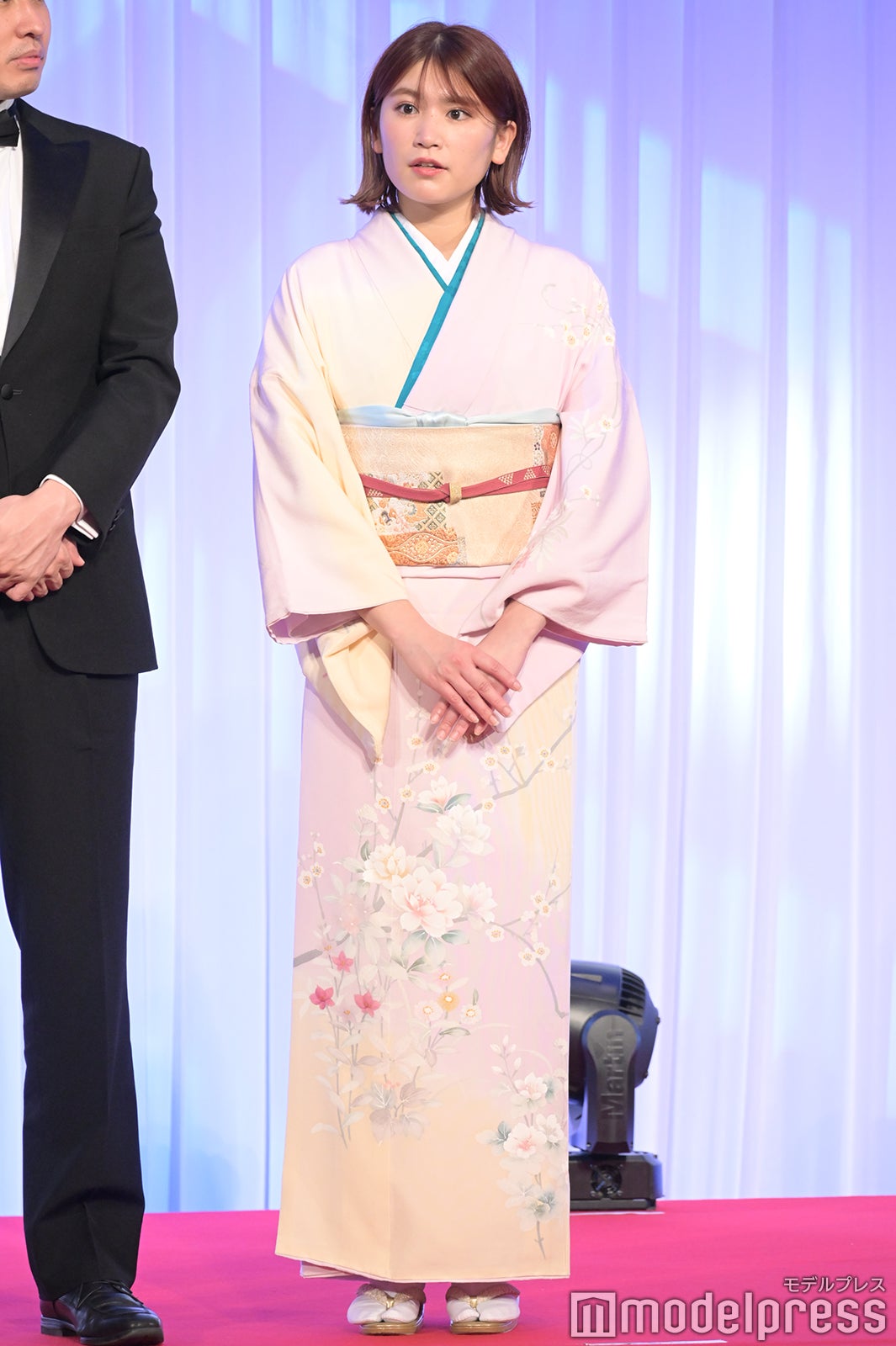 衣装のポイントについては「鎖骨がきれいに見えるように、オフショルにして。ここにキラキラのネックレスを入れたりとか」「ギャルっぽくミニスカです」など解説。今年の抱負を聞かれると「ほうほう?ほうふ?ああ、目標ですか(笑)?すいません(笑)」と返して会場を沸かせ「私のことを、もっともっとたくさんの方々に知っていただくっていうのと、テレビの(出演)本数を上位獲ることです。あと、ギャルのトップ獲ります!」と宣言していた。