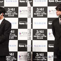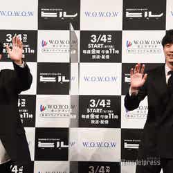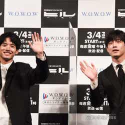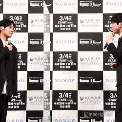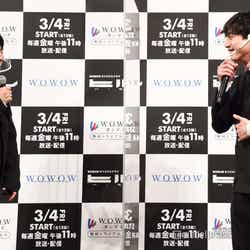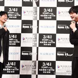 俳優の赤楚衛二と坂口健太郎が7日、都内で行われた「WOWOWオリジナルドラマ ヒル」(毎週金曜23時放送 ※3月4日より全12話)完成報告会に登壇。坂口がアクションシーンについて振り返った。