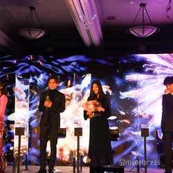 また、終盤の挨拶で岩田はNetflixオリジナル作品の出演が初ということで、「海外の方がどんな感想を抱くのかワクワクする気持ちでいっぱい」と海外の反応にも期待を膨らませ、「今はオリンピックが話題ですが、こういう形で自分たちが世界に発信できるチャンスをいただけたので、お家にいる時間も多いと思うので皆さんの生活を彩る作品の1つになればと思います」と呼びかけ。長谷川も吹き替えバージョンで自分の役にあてられた声を確認したいと新しい楽しみ方を提案した。フィナーレでは、イベントがバレンタイン翌日ということで、篠原が一番お気に入りと語った金魚「ピンポンパール」をイメージしたフラワーボールを岩田から篠原へプレゼント。さらにサプライズで、本作でも非常にロマンティックなシーンのひとつである花火のプロジェクションマッピングが会場を彩った。