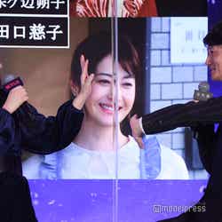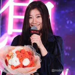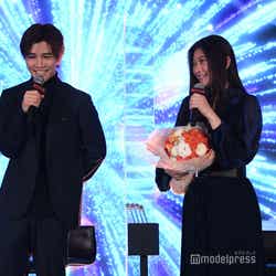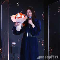 岩田から花束を受け取った篠原は「嬉しいです」と笑顔を見せ、「岩田さんからこんな素敵な花束をいただいてすみません。ありがとうございます」と恐縮していた。(modelpress編集部)