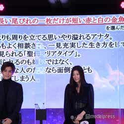 イベントでは、同作の登場人物にちなみ、“「金魚妻」心理テスト”を実施。選んだ金魚で“表と裏”がわかるというテストに挑んだ。岩田と長谷川は相手を虜にしてしまう「魔性タイプ」と診断され、この結果に「そうなんですね、適当に選んだんですが…深いですね色々と(笑)」と何とも言えない表情の岩田と、「ほんとですか(笑)?」と結果を疑う長谷川。そんな2人に、篠原は「人を惹きつける魅力というのがありますよね」と絶賛すると、長谷川は「自分じゃなんともいえない」と笑い、それに相づちするように岩田も「ほんとにそれです」と微笑んだ。また、安藤は、刺激的なことを求める「小悪魔タイプ」と診断されるも、あまり納得のいかない様子。「照れますよね、自分だと答えづらい」とコメントし、共演者の笑いを誘った。