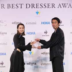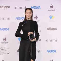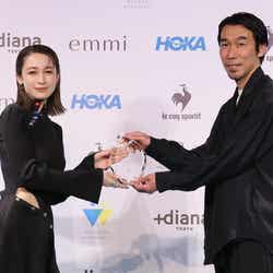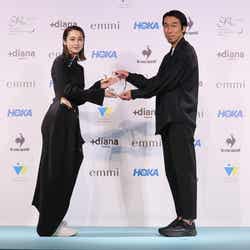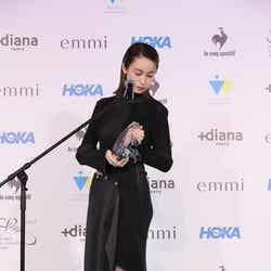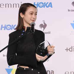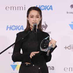 トロフィーを受け取った藤井は、「まさかこんな光栄な賞をいただけるとは思わなかったです。スニーカーが本当に大好きで、毎日履いているので夢のようです」と喜び。美肌をチラ見せした、タイトなワンピースでスニーカーを着こなし登場した藤井。スニーカーに合わせるコーディネートのこだわりを聞かれると「あまりカジュアルになりすぎないように、あえてワンピースを着たり、革ジャケットを羽織ったり、デニムのセットアップを着たり、甘さだったり辛さをプラスして全体のバランスをとるようにしています」と紹介した。