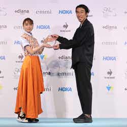 女優部門受賞の松本まりかは「このような栄えある場に呼んでいただけてとても嬉しいです。2022年2月22日という2がたくさん重なった日。何年か前から特別な日にしたいと思っていたので、今日この賞に呼んでいただけてとても嬉しいです」と喜び。さらに「あまりスニーカーのイメージがない私を呼んでいただけたことにとても驚き、嬉しかったです。ヒールなどのイメージがあるかもしれないですが、普段は7、8割スニーカーなので、知らない所を見つけてくださったのかなと」と、意外な一面をアピールした。