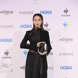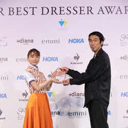 モデル部門を受賞した藤井は、「まさかこんな光栄な賞をいただけるとは思わなかったです。スニーカーが本当に大好きで、毎日履いているので夢のようです」と喜び。美肌をチラ見せした、タイトなワンピースでスニーカーを着こなし登場した藤井。スニーカーに合わせるコーディネートのこだわりを聞かれると「あまりカジュアルになりすぎないように、あえてワンピースを着たり、革ジャケットを羽織ったり、デニムのセットアップを着たり、甘さだったり辛さをプラスして全体のバランスをとるようにしています」と紹介した。
