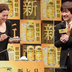 イベントでは合計3杯ものアルコールが提供された。その度に一口ずつ飲んだ内村は「すいませんね、午前中から。何杯飲ますんだ(笑)」とご機嫌で、中村も「いい気分になってしまいますね」と思わず頬を緩ませていた。(modelpress編集部)