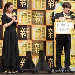 女優の中村アンが24日、都内で行われた新商品発表会にお笑いコンビ・ウッチャンナンチャンの内村光良とともに出席。美しいデコルテを見せた黒ドレス姿で登場した。