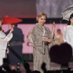 「sugar nine」のステージにも登場したヘラヘラ三銃士。ありしゃんがベージュ、さおりんが白、まりなはメンバーカラーのピンクに合わせたヘアと浴衣を着こなし、会場は釘付けとなった。