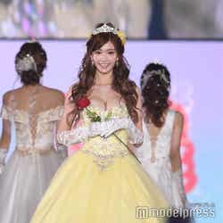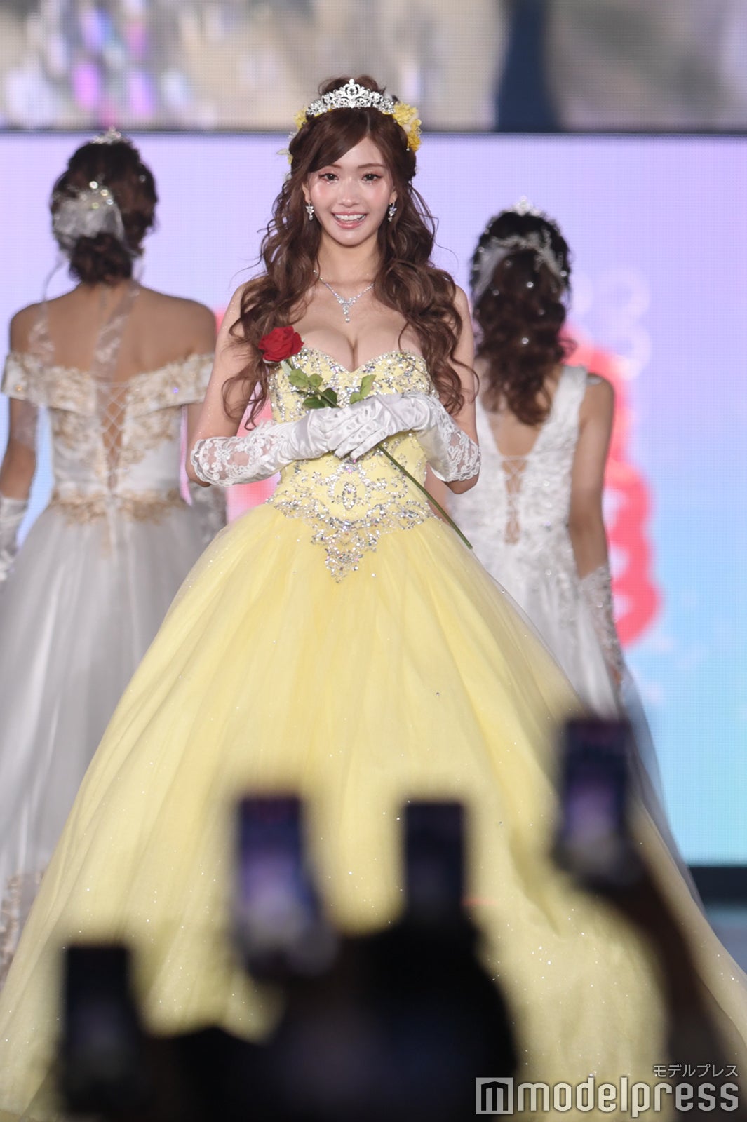 上品にランウェイを歩き、先端では手に持つ薔薇を差し出すような仕草で魅了。美谷間と背中を披露し、ドレスに負けない華やかさに会場はうっとりしていた。