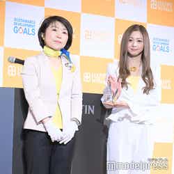 同アワードは、持続可能な社会づくりに貢献し、さらなる活躍が期待できる女性を表彰するもの。一般社団法人『Think The DAY』の代表理事を務めており、被災地支援などが評価されて個人部門で受賞した紗栄子は「この度は、このような素晴らしい賞を受賞させていただき、大変うれしく思っております」と挨拶。また「この賞は、決して私一人だけではいただくことはできなかったもので、日々一緒に支援活動を取り組んでくれる仲間たち、そして私に支援のノウハウを一から教えてくだった九州のボランティアの皆様、そして手探りながらも見つけた支援の形に賛同してともに動いてくださった全国の皆様。その誰もが欠けてもいただけなかったものだと思っております。本当にありがとうございます」と感謝の気持ちを語った。