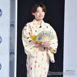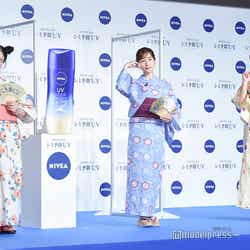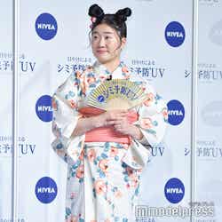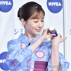 浴衣を着るとテンションが上がるか追求されると「上がりますね。女の子はみんなそうなんじゃないかなと思いますし、男性も多少ドキッとしてくれるのかなと思っています」とあざとい笑顔を見せた。