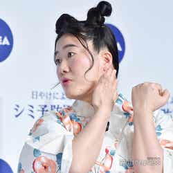 続けて、浴衣を着た際のスキンケアで気を付けている点を聞かれた田中は「うなじが見える機会が多いと思うんですよね。ヘアスタイルをアップにすると、見えている部分がこの辺(うなじ)なので、ここに日焼け止めを塗り忘れないように気を付けたいところですよね」と話し、うなじを見せたことで多くのフラッシュを浴びると「うなじっていうのは引きがあるんでしょうか(笑)。ありがたいことです。顔も使ってください」とご満悦。加えて「草履なので、足の甲に塗り忘れがちですので、そういうところもちゃんと塗ってほしいなと思います」とおすすめした。イベント中盤からは、ガンバレルーヤの2人も登場。イベントでは、浴衣姿で“うなじ”が映える日本舞踊にインスパイヤされた動き『艶肌所作』を教わり、披露する一幕もあり、田中が同所作を披露するとガンバレルーヤの2人は「素敵!」と目を輝かせ、まひるが「首からなんかボコって出てましたけど」と指摘すると、田中は「それはね、胸鎖乳突筋を作ったの。ここが綺麗にスッと出るように、トレーナーさんと一緒に作りました」と告白。