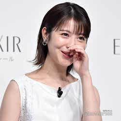 なお、浜辺とコラボしたポーチがついた同商品が発売されるそうで、ポーチを手にした浜辺は「愛犬のぽぷちゃんというポメラニアンをモチーフにしたイラストを入れていただていたんですけど、とっても似ているんですよね。それがかわいらしくて。女の子なんですけけどすごく凛々しい眉毛と、アイラインのような模様がこの子にはあって、口の周りが黒かったりして似ているので、私もたくさんほしいなと思っています」と頬を緩め、浜辺にとってぽぷはどんな存在か尋ねられると「疲れておうちに帰ると元気に迎えてくれて、1番癒される存在です。ずっと一緒にいたいんですけど、そういうわけにはいかないので、お仕事に出るときにこのポーチでぽぷちゃんを持ち歩いて、元気と癒しをもらえたらいいなと思っています」と目を輝かせた。(modelpress編集部)