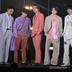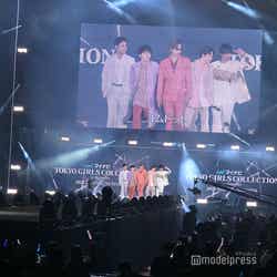 男性で最多出演となるSnow Manのラウールが、今回もソロで登場。上半身裸にジャケット、ピンクのスーツ姿で圧巻のステージパフォーマンスを披露し、会場を圧倒した。その後Snow Manが、映画『おそ松さん』(3月25日公開)の劇中衣装を身に纏い役になりきってランウェイ。いつもと変わらずわちゃわちゃトークで盛り上げた。