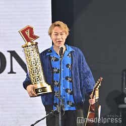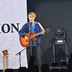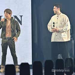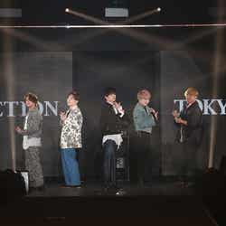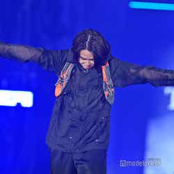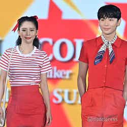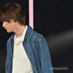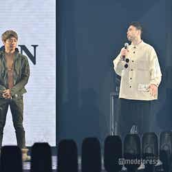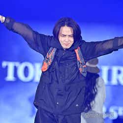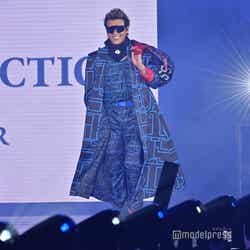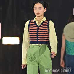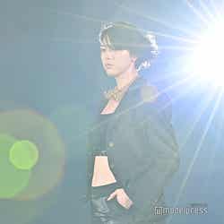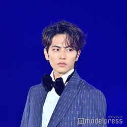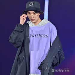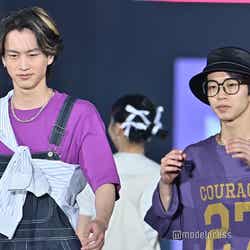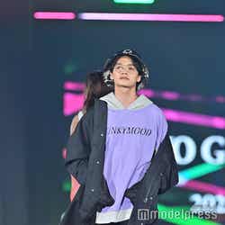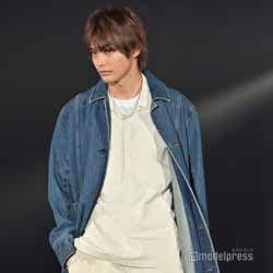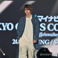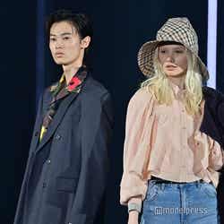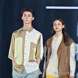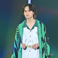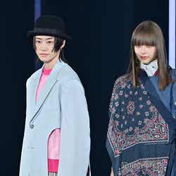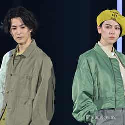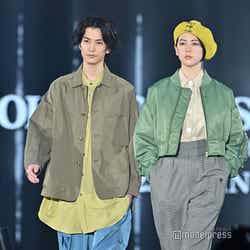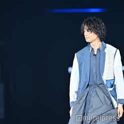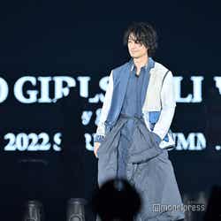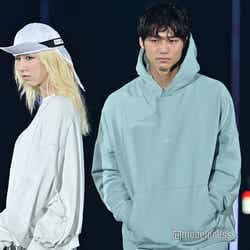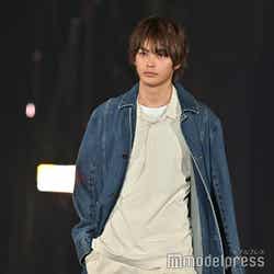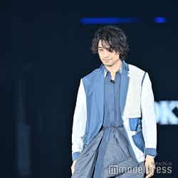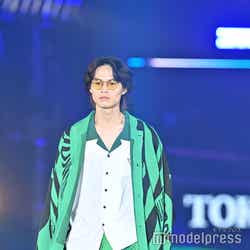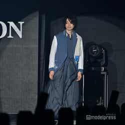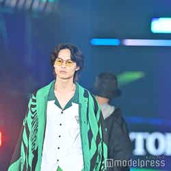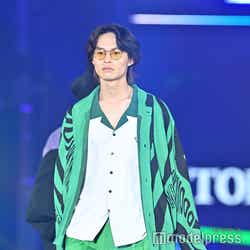 中盤には、俳優の志尊淳がシークレット登場。総柄タキシードに赤のスニーカーを合わせた斬新スタイルを見事に着こなし、堂々としたオーラでランウェイを闊歩した。渡邊圭祐ら豪華イケメンがカップルランウェイ