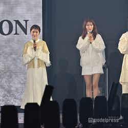 イベントトップバッターはモデルで女優の中条あやみ。きらびやかなコーディネートで、颯爽と登場した中条は、美くびれをチラリと見せながらランウェイを彩った。そのほか横田真悠、三吉彩花らが続々と春夏コーディネートで登場。カラフルなスタイルで美ボディを披露した。