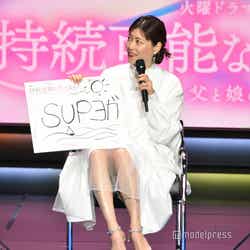 ドラマのタイトルにちなみ、持続可能な暮らしのために実践していることや、これからやってみたいことについてフリップで回答したキャスト陣。上野は「SUPヨガ」と答え、「ピラティスをやっているんですけど、ちょっと違うので、どうせやるなら海でSUPヨガを!ボードの上で浮きながらやってみたいな~と去年くらいから思っているんですけど、今年は絶対やりたい」と意気込み。続いて、「本を読み終わる!」と回答した田中は「実践しなきゃということで、持続可能じゃないことを。台本以外で本を読むのってすごいいいよなぁ、と思って、たまに本屋さんに行って買って読むんですけど、読み切る前に時間がなくなってやめちゃったり、時間が空くともう一回最初から読み直すのは嫌で、途中からは覚えてないし、あぁっ!って言って他の本を読みだすんですよ。最近本を読み切れていないので、持続可能で読み切りたい」と具体的に明かした。