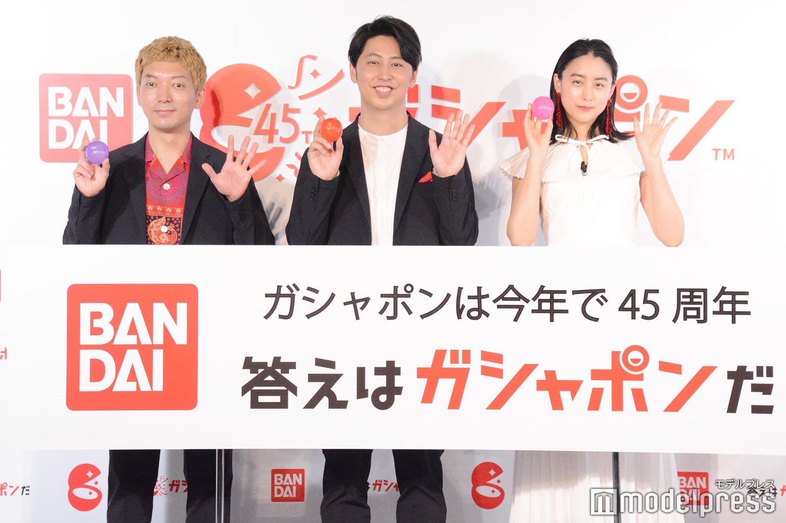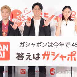 本発表会で初披露された、「3D立体映像」「世界に2台」「2メートル超え巨大サイズ」の「GASHAPON ODYSSEY」を世界初体験した山本は、ハンドルを回したり押したりすることにより、自分でキャラクターを作っているような感覚を堪能し、「没入感がありました。本来のガシャポンの良さも残しながら、自分が作った感が味わえるのが楽しかったです」とにっこり。そして、「こういうイベントに“ガシャポン大好き代表”として出られたことが光栄です」と喜びをかみしめた。一方、「格好いいガシャポンの回し方」を披露して会場を沸かせた屋敷は、「山本さんと一緒に出れて、本当に売れたなと実感しました」とにんまり。嶋佐は「ガシャポンがたくさんあって、めちゃくちゃワクワクしました。大人のテンションも上げてくれる」と充実した表情を見せた。(modelpress編集部)