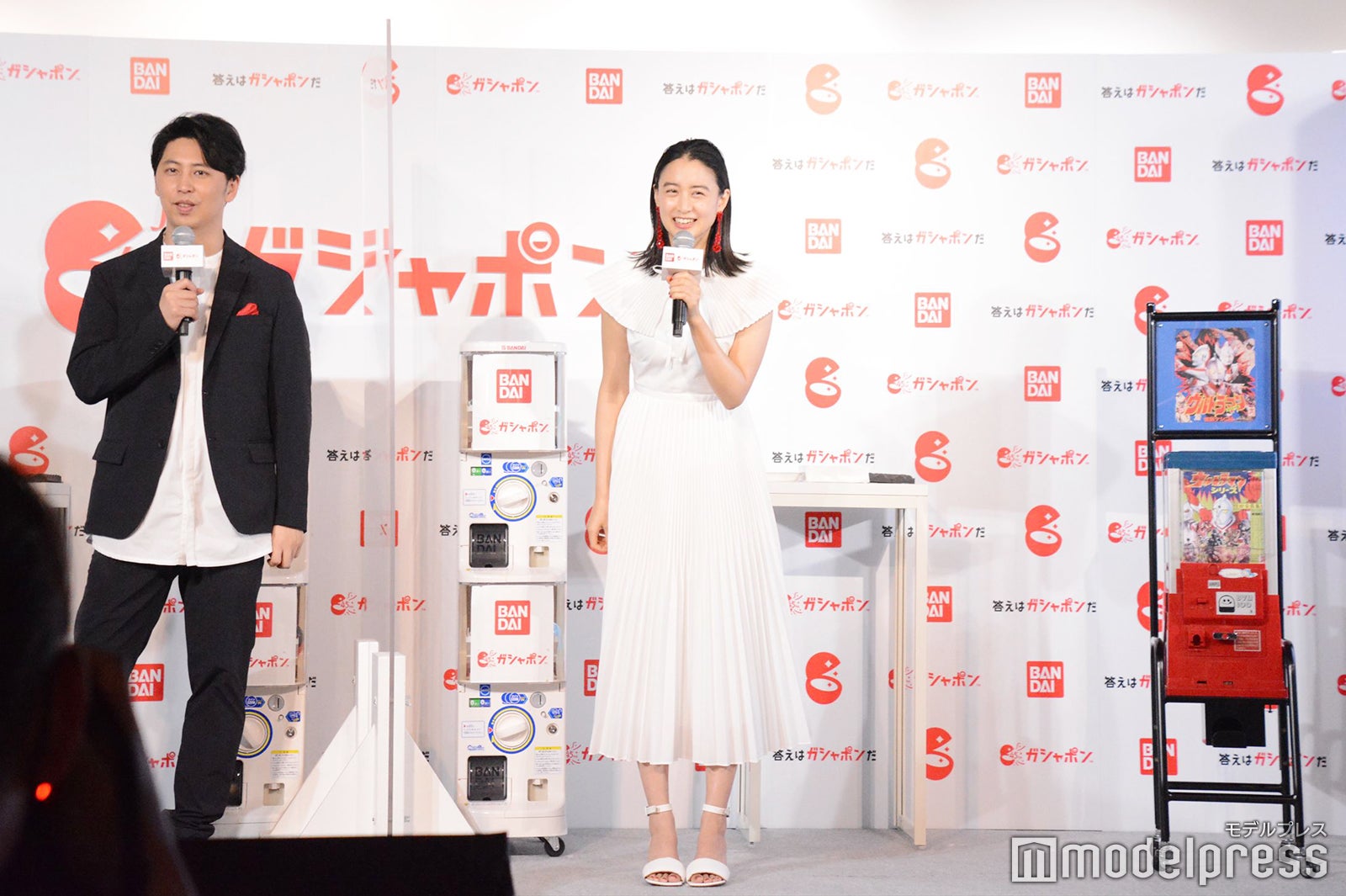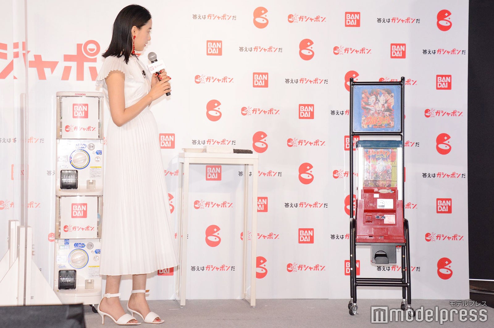 山本は「ガシャポン大好きな山本美月です」と自己紹介すると、会場に設置された初代ガシャポンを見ながら「かわいいですね。欲し~い。自分で作ったものを入れて、遊びに来た人に回してほしいです」と思わず吐露。「父も収集癖があって、一緒に楽しんでいたと思います。『お買い物について行くけど、ガシャポンやらせてね』みたいな感じでした」と子供時代も思い返すと、現在は「家に100個ぐらいあるのかな。専用の透明のケースに並べています。ちょっと揺れるとガシャガシャと崩れるので、また並べ直して、新しい物語を作っていくんです。お辞儀しているやつの真ん中にバンザイしているのを置いたりして崇めさせるとか…」と楽しみ方も紹介した。