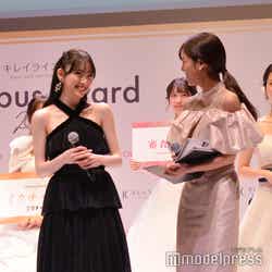 応援アンバサダーとして駆け付けた堀は、美しいデコルテの輝くブラックドレス姿で登場。グランプリ発表を託されると「自分のオーディションのときを思い出して私もとても緊張しています。ここに立っているだけでも十分すごいので、みなさんにグランプリをあげたい気持ちです」と心境を明かしつつ、グランプリに輝いた東京都立大学3年生・藤井珠生さんの名前を読み上げた。さらに「自分の夢や目標を持っている方ってそれが実現してもしなくても、持ち続けているだけでも人間としてすごく豊かでかっこいいし、キラキラしている女性って無敵だと思います。これからもどんどんいろんな目標を持って頑張ってほしいですし、私も頑張りたいなって思います」とグランプリを称えるだけではなく、ファイナリスト全員を労った堀に、四千頭身の後藤は「完璧かよ…」と思わず声を漏らしていた。