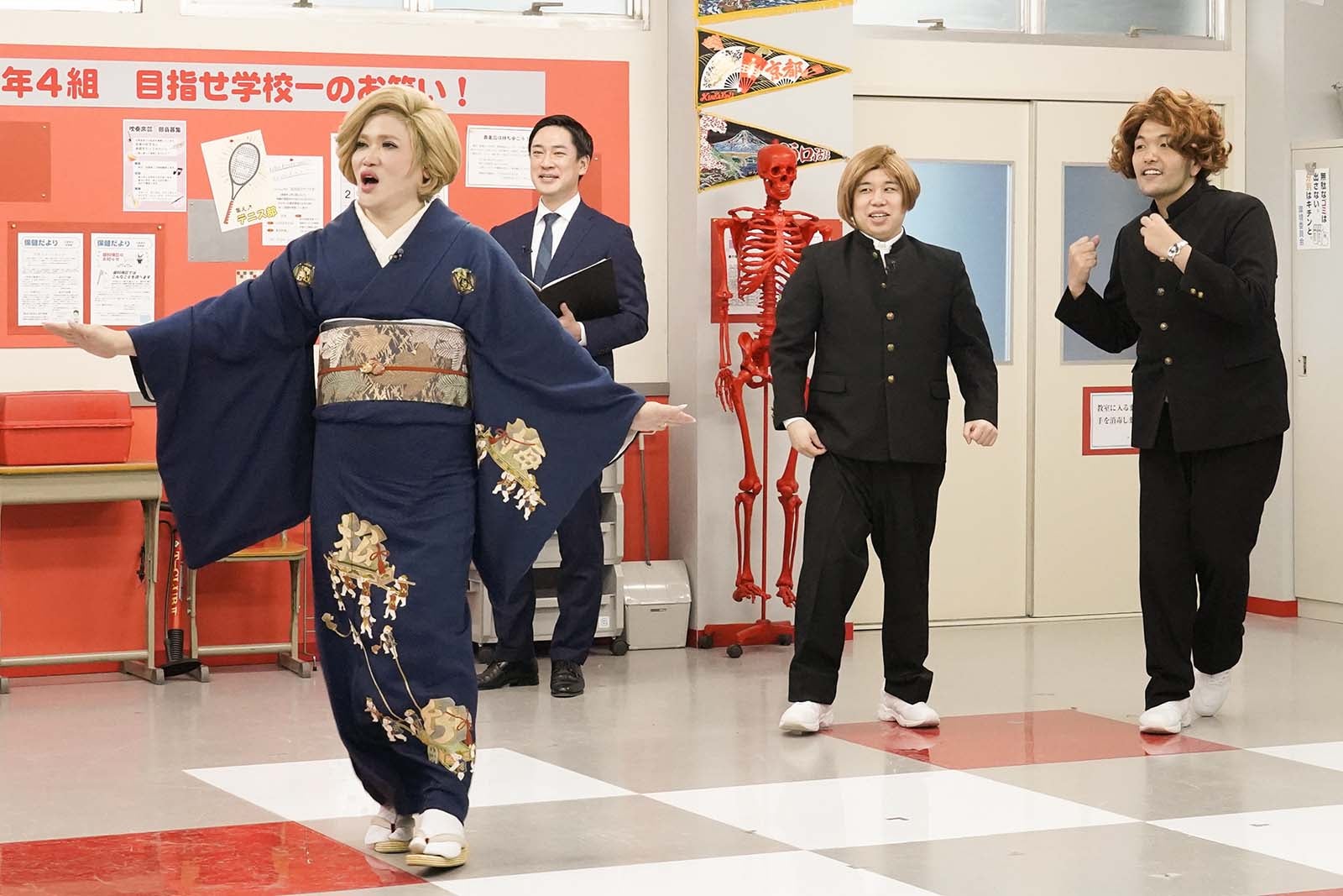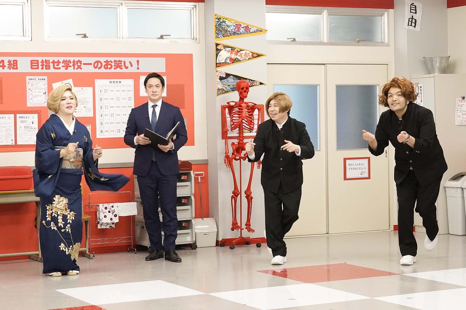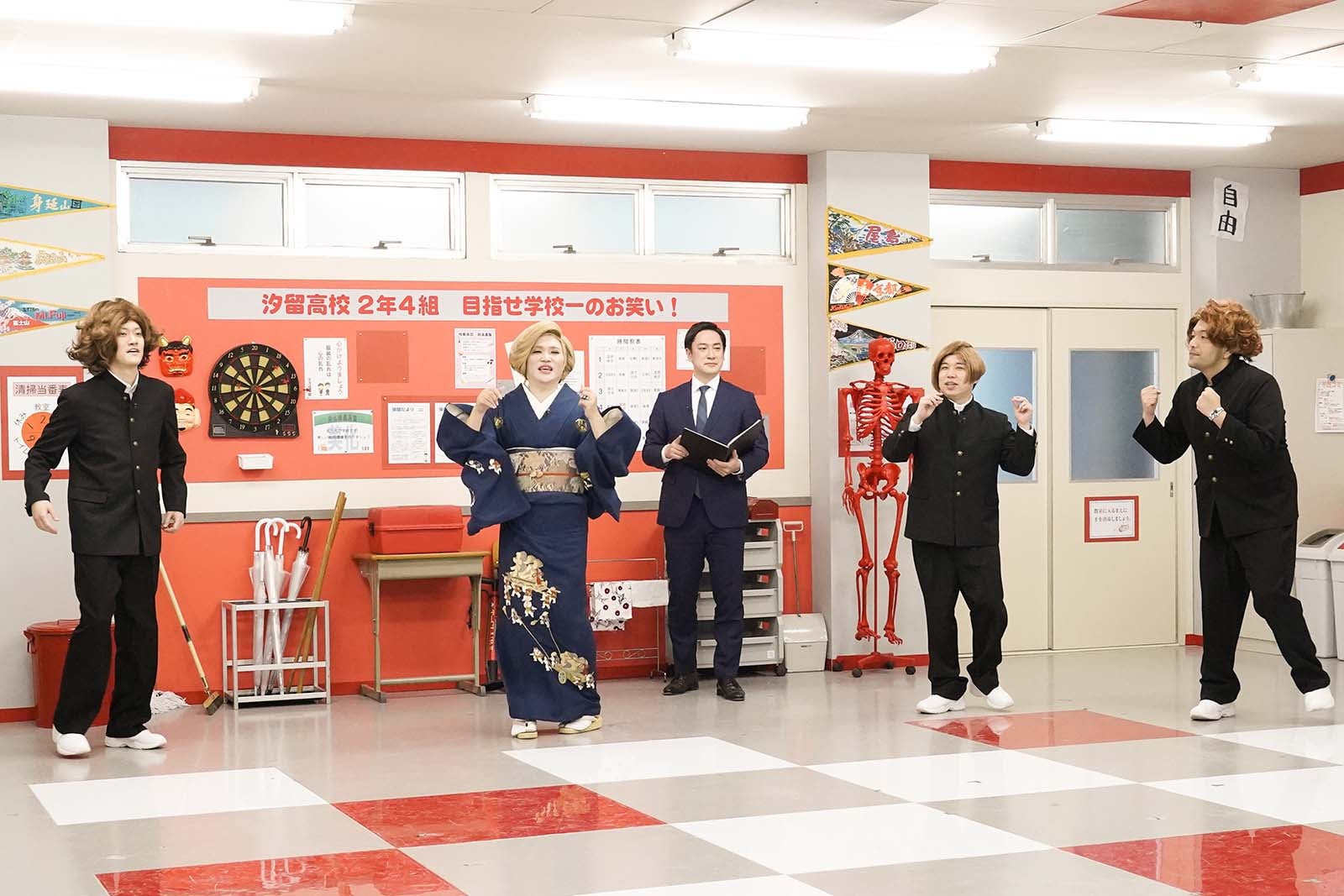 同番組は「目の前の人を笑顔に」を校訓に、クラス全員で学力アップならぬ、お笑い力アップを目指し、誰もが経験のある学校“あるある”な人間関係の中で繰り広げる総合バラエティー。お笑い優等生・学級委員長の霜降り明星・粗品とせいや、お笑い好きすぎて留年中の見取り図・盛山とリリー、クラスのマドンナ・めるる(生見愛瑠)、お笑いスケバン・ヒコロヒーが出演している。