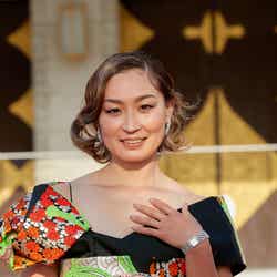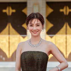 松嶋は「カルティエのジュエリーは重厚感がありつつ、とてもやわらかい印象です。衣装は京都の伝統的な西陣織でドレスをつくっていただきました。和と洋の組み合わせがとても気に入っています」とコメントした。