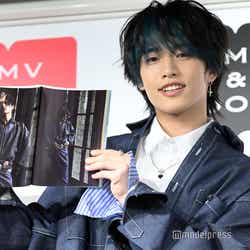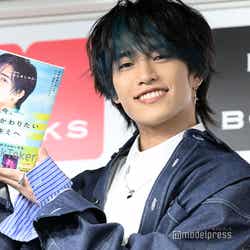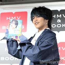 おおしまはフォトエッセイの発売について「本当にめっちゃめちゃ嬉しくて。未だに少し、実感がわいてないっていうのが正直なところです。このような素敵なフォトエッセイを発売させていただけることになって、たくさんの方のお力を賜りまして、本当に素敵なものになったので、それがすごくすごくうれしいです」と喜びのコメント。お気に入りのページには和装のカットを選び「普段僕は口角を上げて笑うシーンっていうのが写真とかでも多くて。自分はあまりかっこいい風は似合わないのかなと思っていたんですけど、めちゃめちゃかっこいい和装で、無表情なクールな感じに撮ってもらえて。今まで自分が可愛い印象の方が似合うのかなと思っていたので、新たな自分を発見できたのであのページをお気に入りのページにしました」と白い歯を見せた。