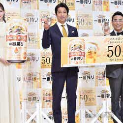 イベントにちなみ、中条は“ビールの泡”をイメージしたドレスで登場。美背中を披露し「ちょっと大人な感じで来させていただきました」と照れ笑いを見せた。ゴージャスに散りばめられたパールとともに、胸元にはチャームで「AYAMI」の文字も。中条だけの特別な衣装となっていた。