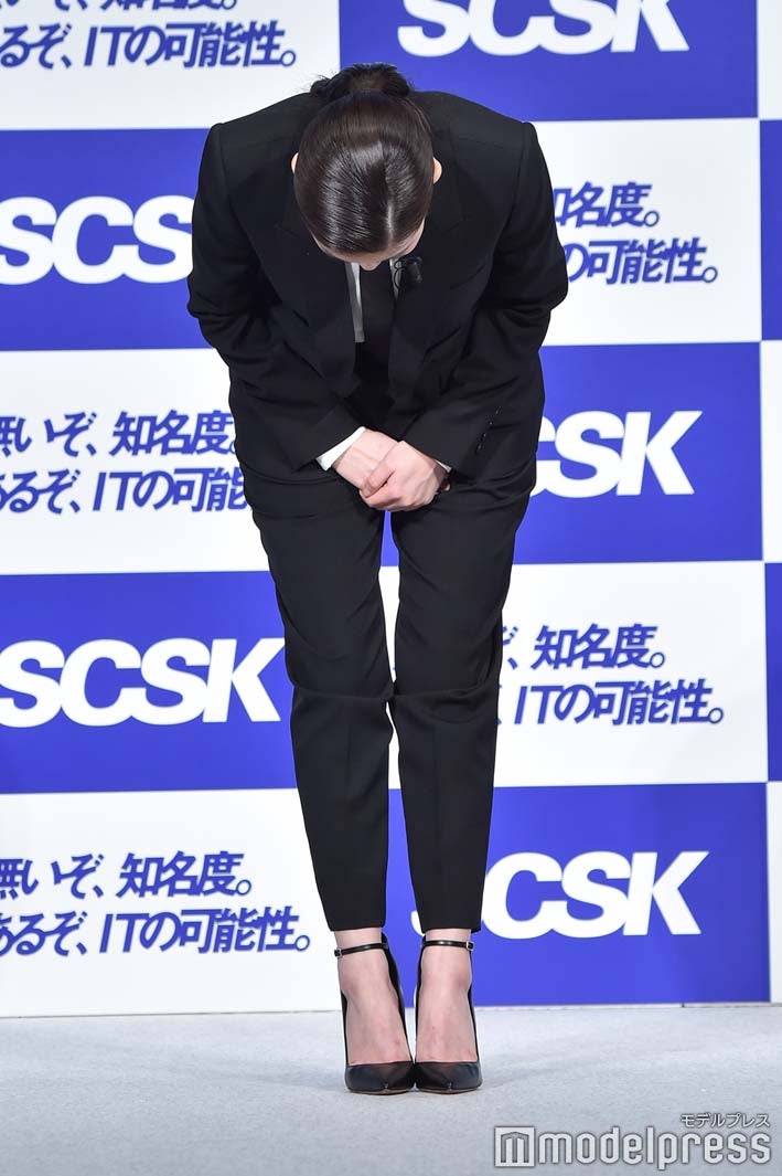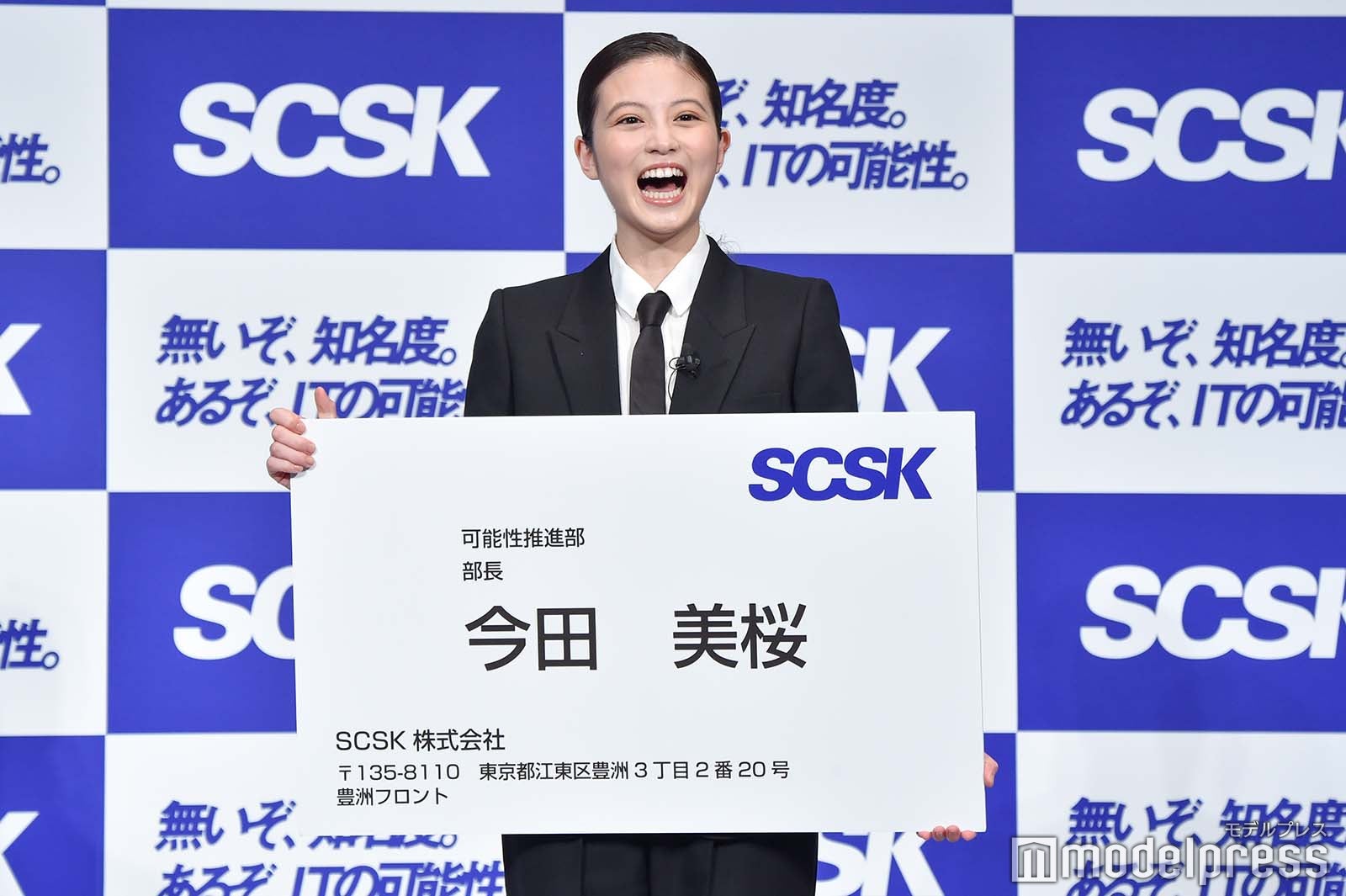 4月27日より関東・関西・中部エリアで放送開始されるテレビCM「Suits篇」に出演し、CMの世界観のままにマニッシュなスーツスタイル&ヘアで、クールなウォーキングを披露しながらステージに登場した今田。CMでは「無いぞ、知名度。SCSK」「あるぞ、ITの可能性。SCSK」と口ずさみながらウォーキングをしているが「振りだったりウォーキングというのは、私あまりリズム感がないので(笑)、何度も確認しながらやらせていただきましたね」とエピソードを明かし、「下手っぴなので、足と手が『あれ?どっちだっけ?』みたいなことがすごくありました(笑)」と苦笑した。