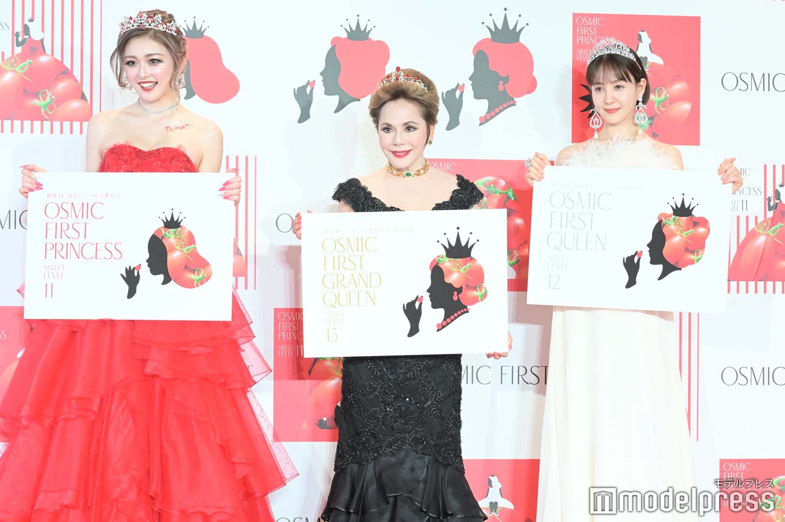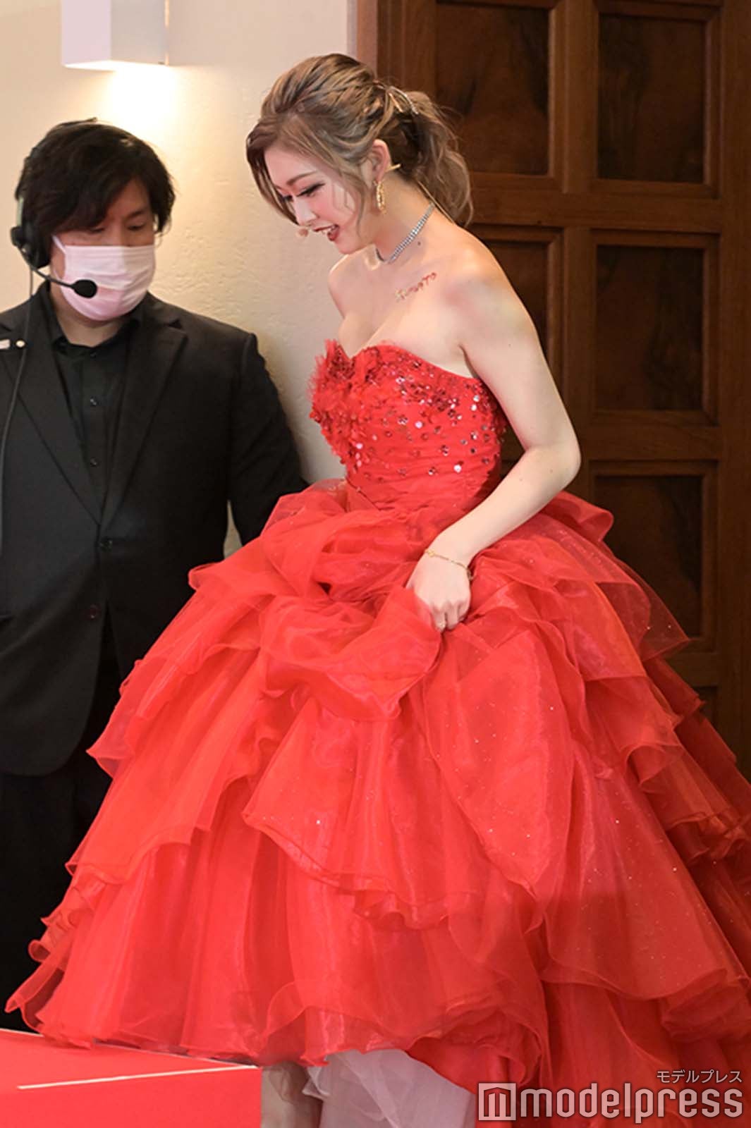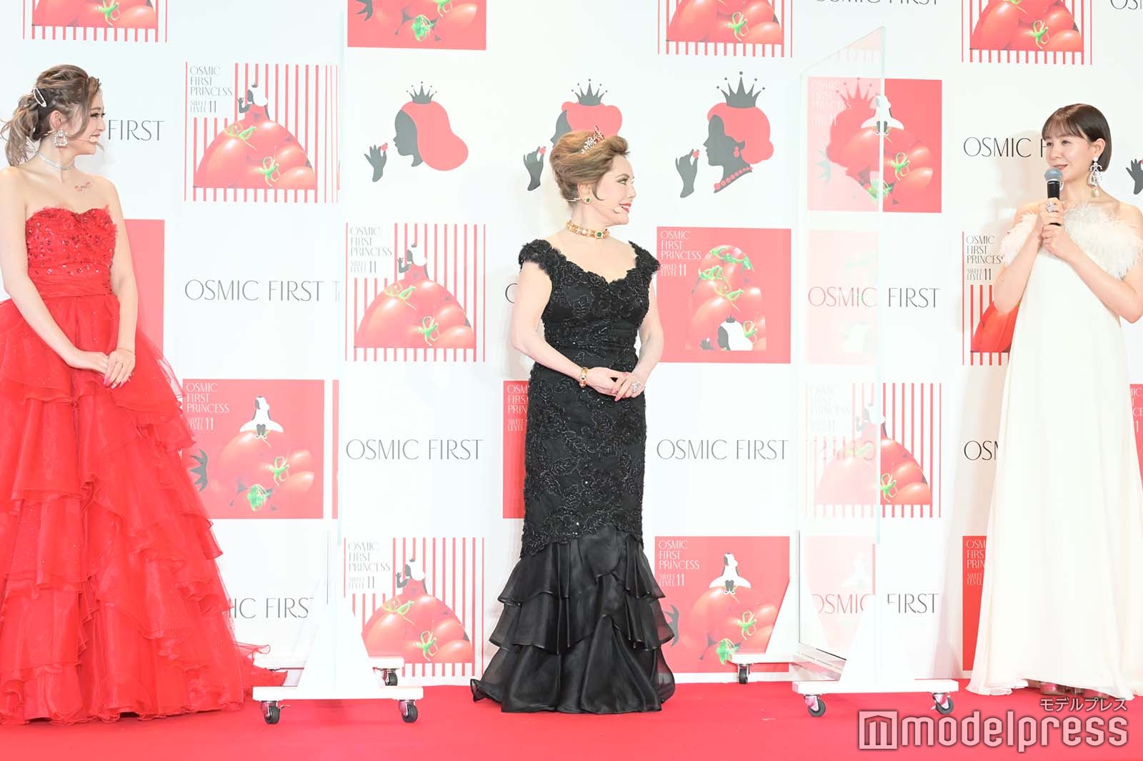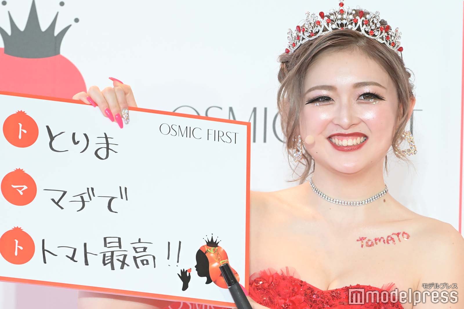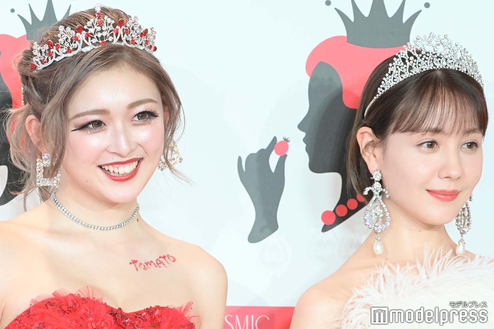 真っ赤なドレスに身を包んだゆうちゃみは「トマトを意識させていただきまして。トマトのプリンセスを意識したコーデになっております」とポイントを紹介。トリンドルは「QUEENということで、シルバーだったり、白っぽい衣装を着させていただきました。リップにトマトの色を入れてみました」と白い歯を見せた。