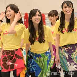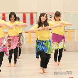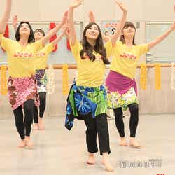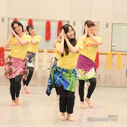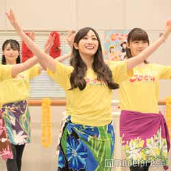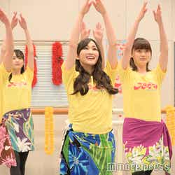 フラダンスやタヒチアンダンスに関して潮は「普段使わない体のいろんなところの筋肉を動かして踊らなくちゃいけなかったり。なかなかそこに苦戦して、難しいなというところを感じているんですけど、毎日レッスンのたびに、46キロくらいの汗をかくくらい(笑)」とグループ名にちなんでコメント。キロという単位をつっこまれると「リットルでした(笑)!46リットルの汗をかくくらい、みんなで汗をたくさんかきながら頑張っていて。段々と、すごく楽しいなっていう気持ちが強くなってきて」と天然ぶりを発揮しながらも、手ごたえを感じている様子だった。